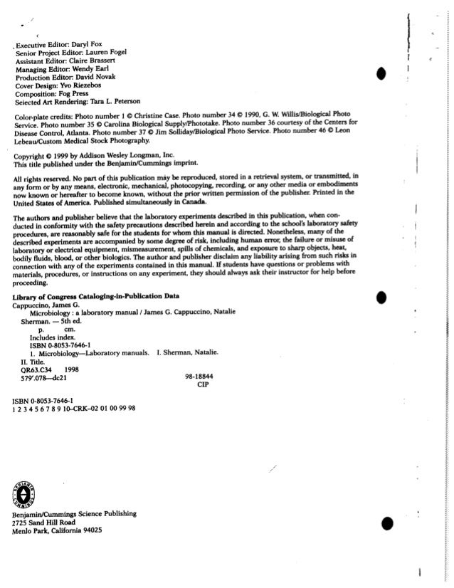 2015 cappuccino sherman microbiology lab manual pdf. A backup is the action of. Soil Microbiology Lab Manual Cappuccino And Home Microbiology Lab Manual James. Soil Microbiology Lab Manual Cappuccino And Sherman eBooks Soil Microbiology Lab Manual Cappuccino And Sherman is available on PDF, ePUB and DOC format. Jan 14, 2013 - By James G. Cappuccino, Natalie Sherman. Microbiology: A Laboratory Manual is known for its thorough. Part 12: Microbiology of Soil 51.